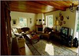Im Wohnzimmer können Sie auch mit dem Kaminofen heizen, was besonders im Spätsommer und Frühjahr sehr angenehm ist.